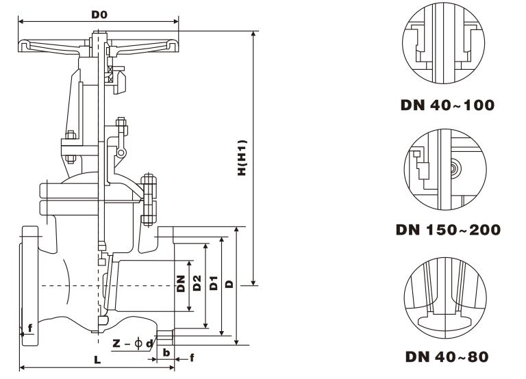 四、Z41W美標(biāo)閘閥主要外形及連接尺寸: