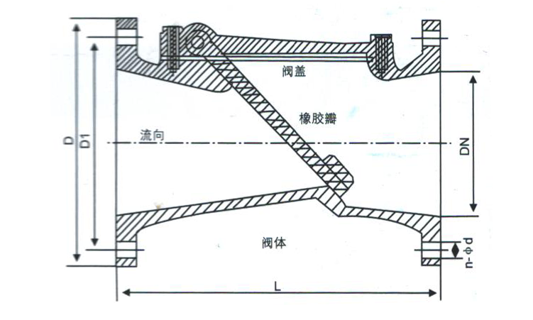 H44X(SFCV)橡膠瓣止回閥主要外形尺寸(法蘭連接尺寸按GB4216的規(guī)定)